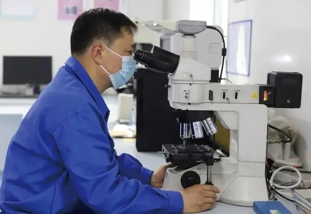 陳運杰正在查看零件局部熱處理表面質(zhì)量。