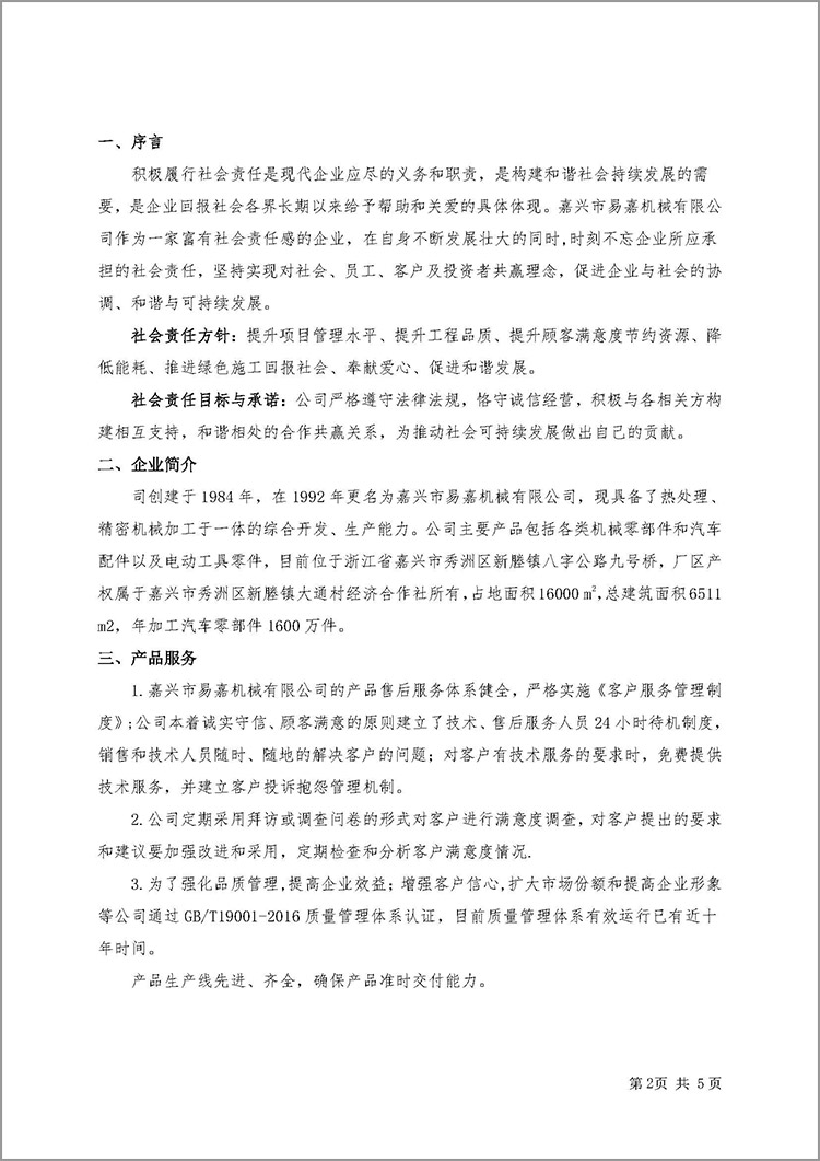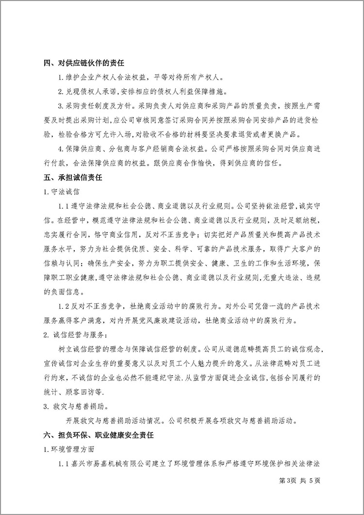 嘉興市易嘉機(jī)械有限公司企業(yè)社會責(zé)任報(bào)告(2023 年度)