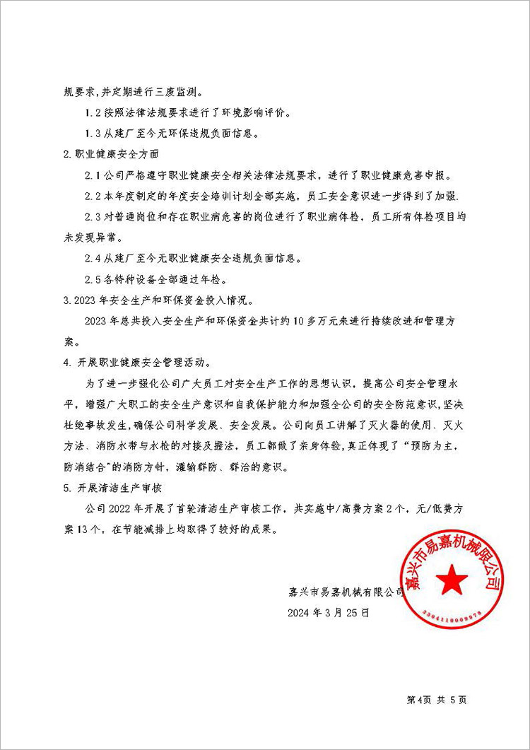 嘉興市易嘉機(jī)械有限公司企業(yè)社會責(zé)任報(bào)告(2024年度)
